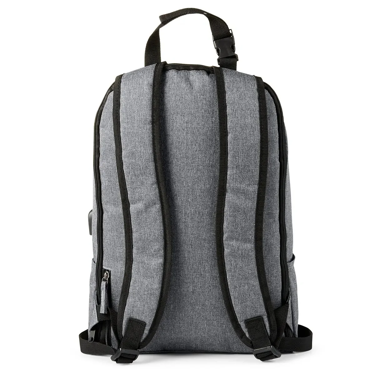 Lightweight TSA-friendly laptop backpack with anti-theft design.Made of water-repellant 600D Polyester fabric exterior with black 210D Polyester lining.Features hidden side zipper pocket (approx. 4.75''l) for passport and other important documents.Large main compartment with rear zipper access featuring anti-theft locking clasp for added security.Includes interior multi-panel organizer pockets for small tablet, smartphones, power banks, notepads, or cables, and padded laptop sleeve with hook and loop style closure.